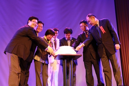 出席晚会的诸位领导一起共同切下生日蛋糕,并向本月过生日的三位师生代表赠送了生日礼物,全场在合唱“祝你生日快乐”的音乐声中,共同庆祝清华大学102岁华诞和五道口金融学院周年纪念,祝福“五道口”明天会更好。