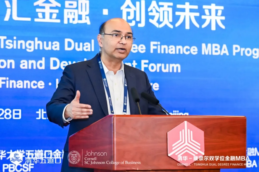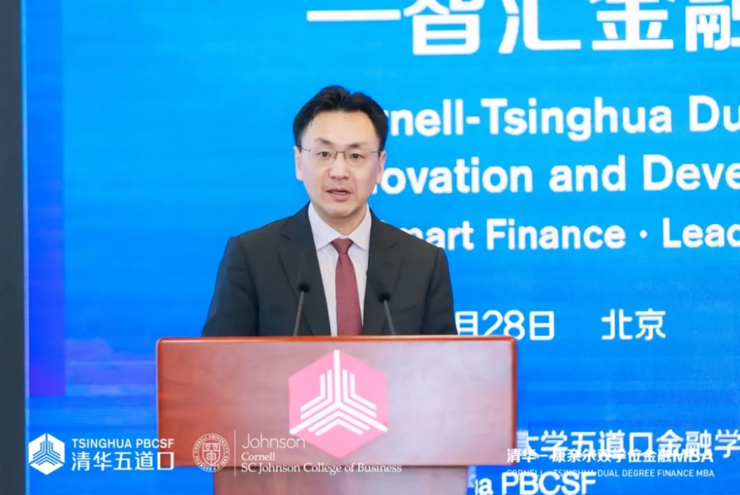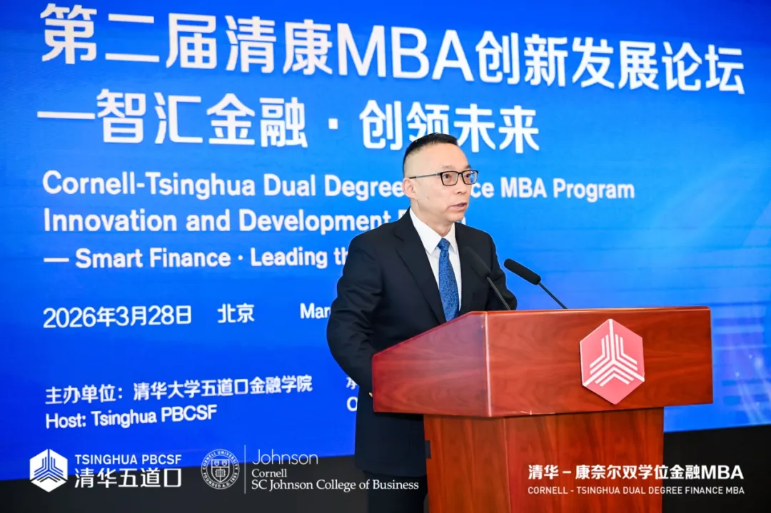 清华大学五道口金融学院院长焦捷代表学院致辞,对康奈尔大学约翰逊管理学院院长Vishal Gaur 及各位嘉宾表示欢迎与感谢。他指出,学院勇担国家金融改革与人才培养使命,传承“不怕苦,敢为先,讲团结,重贡献”的精神,以“更专业、更科技、更国际、更人文、最清华”为方向,建设世界顶尖金融学院。自2014年清康双学位金融MBA项目创办以来,项目连续7年位居中国商学院金融MBA榜首,成为中美教育合作典范。未来学院将继续与康奈尔大学深化合作,汇聚全球智慧,培养国际化金融领军人才,为金融创新与中美人文交流贡献力量。