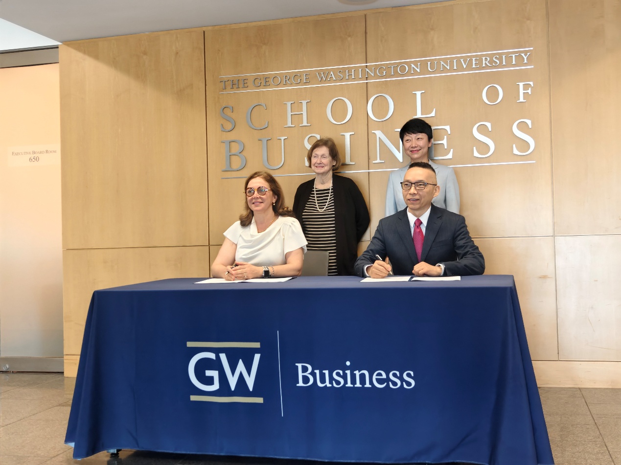 2026年4月,清华大学五道口金融学院院长焦捷率团访问美国乔治华盛顿大学商学院(GW School of Business, The George Washington University),期间双方签署合作协议,宣布共建“金融专业硕士+国际商务硕士”国际双硕士学位项目。此次签约标志着五道口金融学院在拓展全球顶尖商科教育资源版图上迈出关键一步,旨在培养深谙中美市场、具备全球战略思维的未来商业领袖。