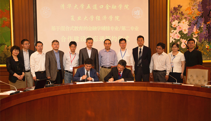 2015年5月16日,清华大学五道口金融学院与复旦大学经济学院基于混合式教育的金融学辅修专业/第二专业合作备忘录签字仪式在复旦大学光华楼思源厅举行。这标志着国内首个线上与线下结合、名校强强合作的教学项目正式启动!