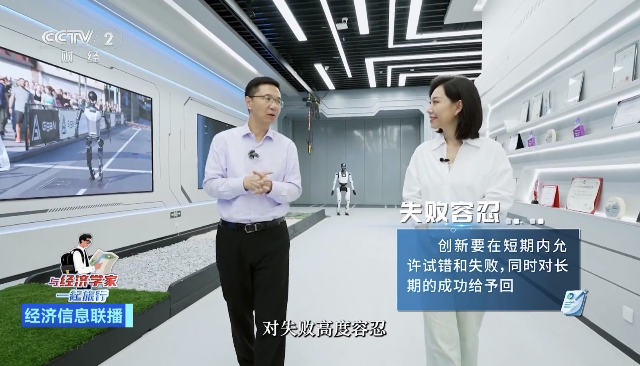 近日,清华大学国家金融研究院院长、五道口金融学院副院长田轩受邀参与中国广播电视总台财经频道《与经济学家一起旅行》专题节目录制,走进北京经济技术开发区具身机器人4S店、人形机器人创新中心、商业航空高科技企业等前沿产业场景,结合实地调研案例深度解读科技强国战略下的产业创新逻辑与金融支撑路径。