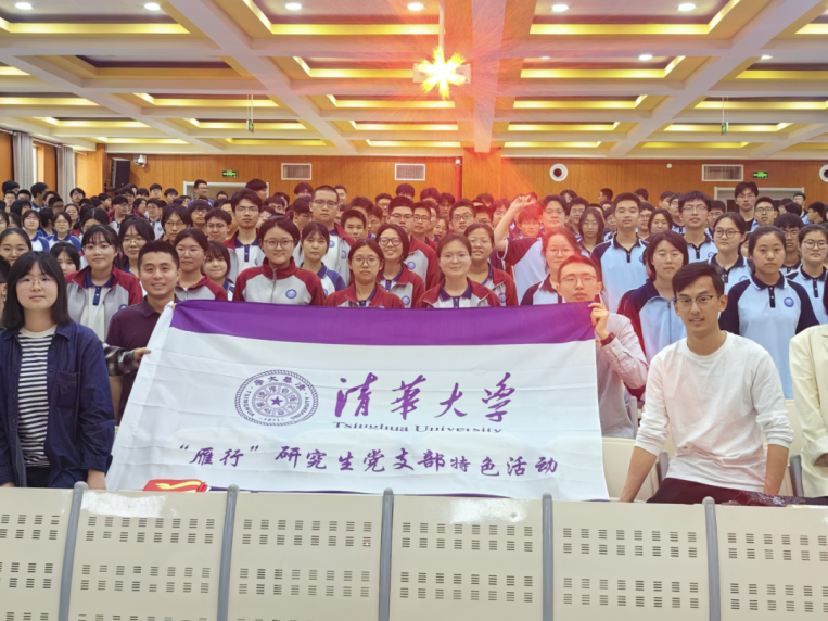 图为沈俊伟(前排左二)和同学一起赴中学宣讲