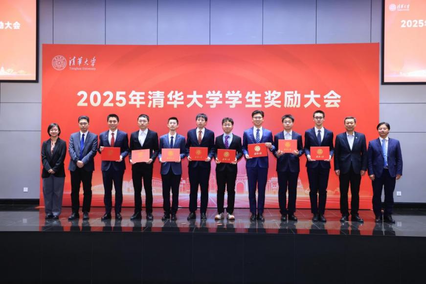 图为沈俊伟(左三)参加2025年清华大学学生奖励大会